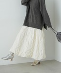 【カーディガン】ほっこりした素材感で、この冬大活躍間違いなしです。1番上のボタンを開けて頂くと抜け感が出ます。ヒップが隠れる長さなので、パンツやタイトスカート等と合わせて頂いてもバランスが良いです。 【インナー】とても気持ちの良い素材感です。前でリボンにしてもかわいいですし、後ろで結んでもおしゃれ感が出ます。個人的に着用しているカーディガンとのセットが、お気に入りです。 【スカート】履いたほうがシルエットの良さが分かりやすいです。裾がバルーンになっていて、マルッとしたフォルム感がかわいいです。ウエストゴムなので、着丈の調節もしやすいです。写真は156cmウエスト履きで足首丈です。