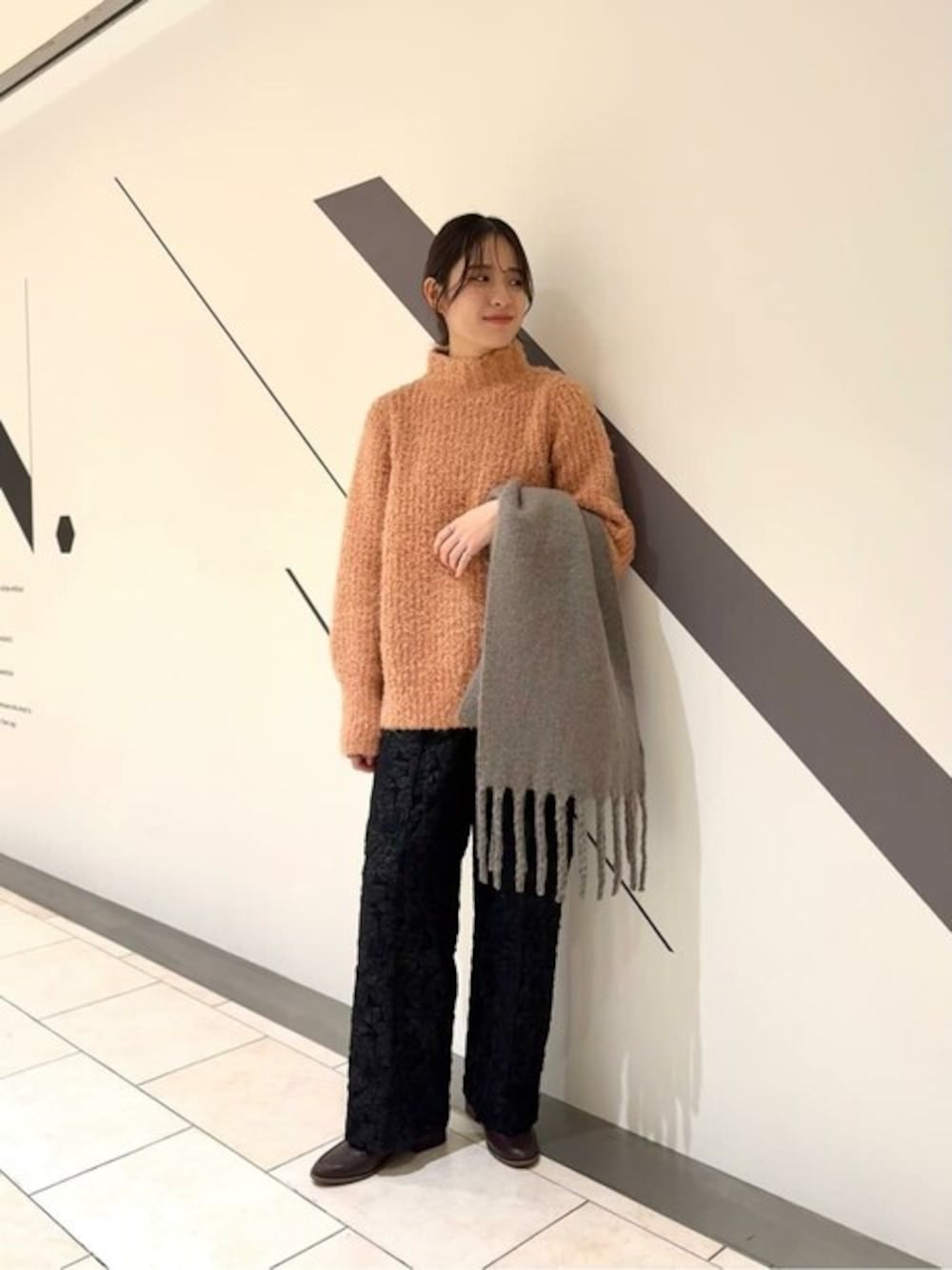 〇ブークレラメ混ハイネックニット 今季トレンドのラメが入ったふわふわなハイネックニット。1枚で華やか見えが叶うアイテムで、クリスマスにもぴったりですよ♡ 【サイズ感】Mサイズ 161cmでお尻くらいの丈感、シルエットを拾いにくくゆるっとお召しいただけます♬ 【素材】 モコモコっとした肌ざわりで、チクチク感もなく柔らかな着心地です。 【コーディネート】 ピンク×ラメの王道モテニットを主役に、ブラックのジャガードパンツを合わせて、大人カジュアルなコーデにしてみました♡ マーメイドスカートを合わせて、甘めなデートコーデにもオススメです◎ staff: 20代前半/161cm/イエベ春/骨格ナチュラル