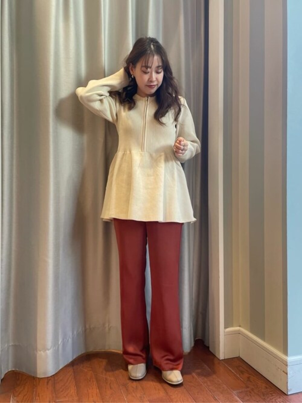N. STAFF(N. Natural Beauty Basic* OFFICE)のニット/セーター「◆フロントジップペプラムニット」を使ったコーディネート