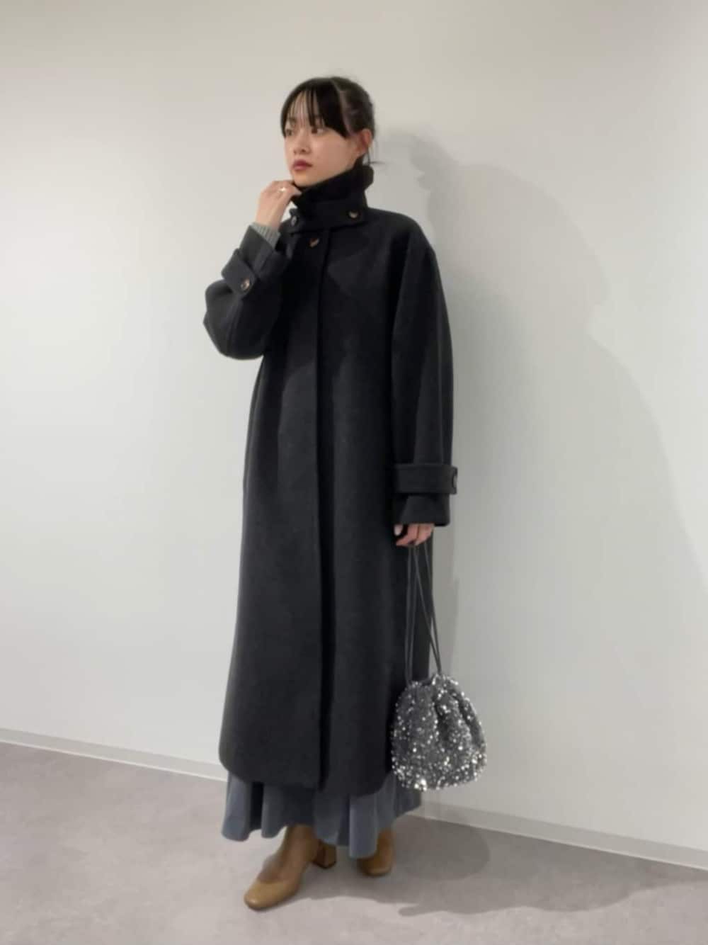 【コート】ステンカラーで気分やシーンに合わせ首元の印象を変えられる万能コート。濃淡のある杢ブラックで表情が出てこなれ感も演出してくれます⌾ 【ワンピース】ラメ混ニットにハリのあるスカートのドッキングワンピース。旬なグレーでも素材とラメで周りと差のつく華やかな1着です♩小物合わせでカジュアルから綺麗めまで雰囲気を変えて着回しを楽しめます!