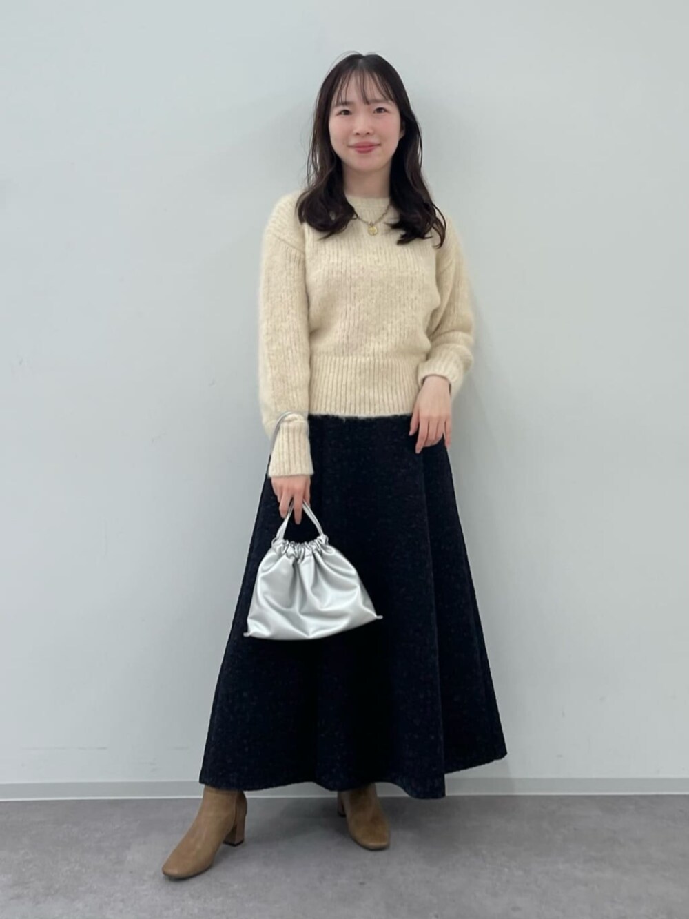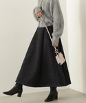 【スカート】トレンド感のあるジャガードスカートですが、N.では大人でも合わせやすいカラーでお作りしている為気軽に取り入れられる1着となっております。フレアなシルエットなので、女性らしくカジュアルダウンしすぎずにお召し頂けます。159cmMサイズ着用でくるぶしにかかるくらいの丈感です。 【ニット】 冬らしいフェザーニット。裾のリブが効いているのでアウトスタイルもスッキリと着られるのでボトムスもシルエット問わず着回ししてお召し頂けます。クルーネックなので、首が詰まったトップスが苦手な方でもサラッと着て頂けます。