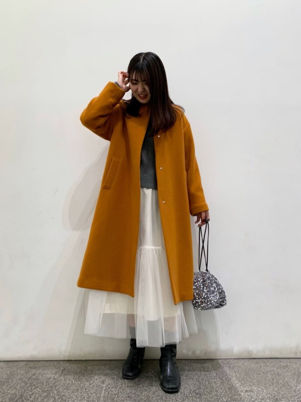 パイルメルトンのノーカラーコートはオンオフ使いやすく、シンプルなデザインなのでコーデを選ばないです◎ *****164cm/イエベ秋/骨格ナチュラル*****