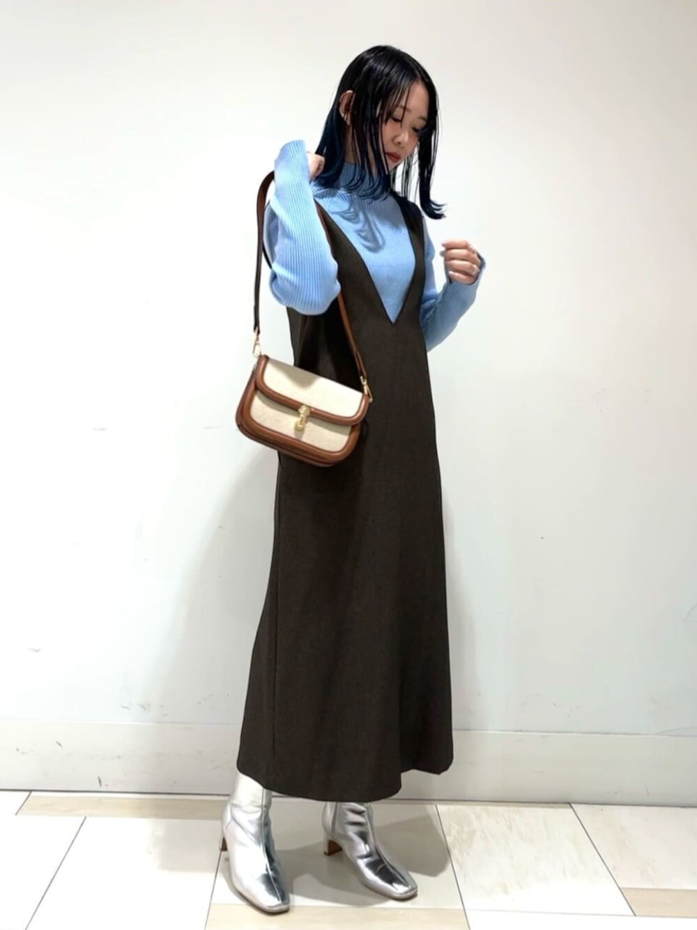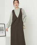 【ニット】袖のスリットが手元を上品に見せてくれます♪もちっとした素材感で着心地◎ 【ワンピース】バックスタイルまで可愛いジャンパースカート︎︎︎☺︎腰周りがすっきりと見えるデザインなので低身長さんでもバランス良く着こなせます!154cmSサイズ着用でショートブーツにかかる位の丈感です!