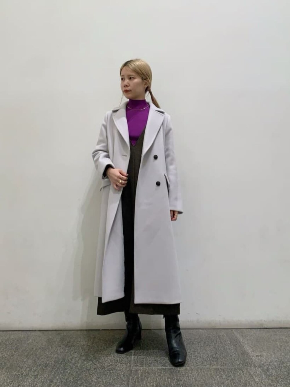 【スタイリングポイント】推しのハミルトンコートです。美シルエットがポイントです。ライトカラーなので、春先までご着用頂けます。チラッとカラーニット等を覗かせると、スタイリングのアクセントになります。ジャンスカは、通年ご着用頂ける万能アイテムなので、インナーを色々と変えてコーディネートを楽しんでみて下さい。