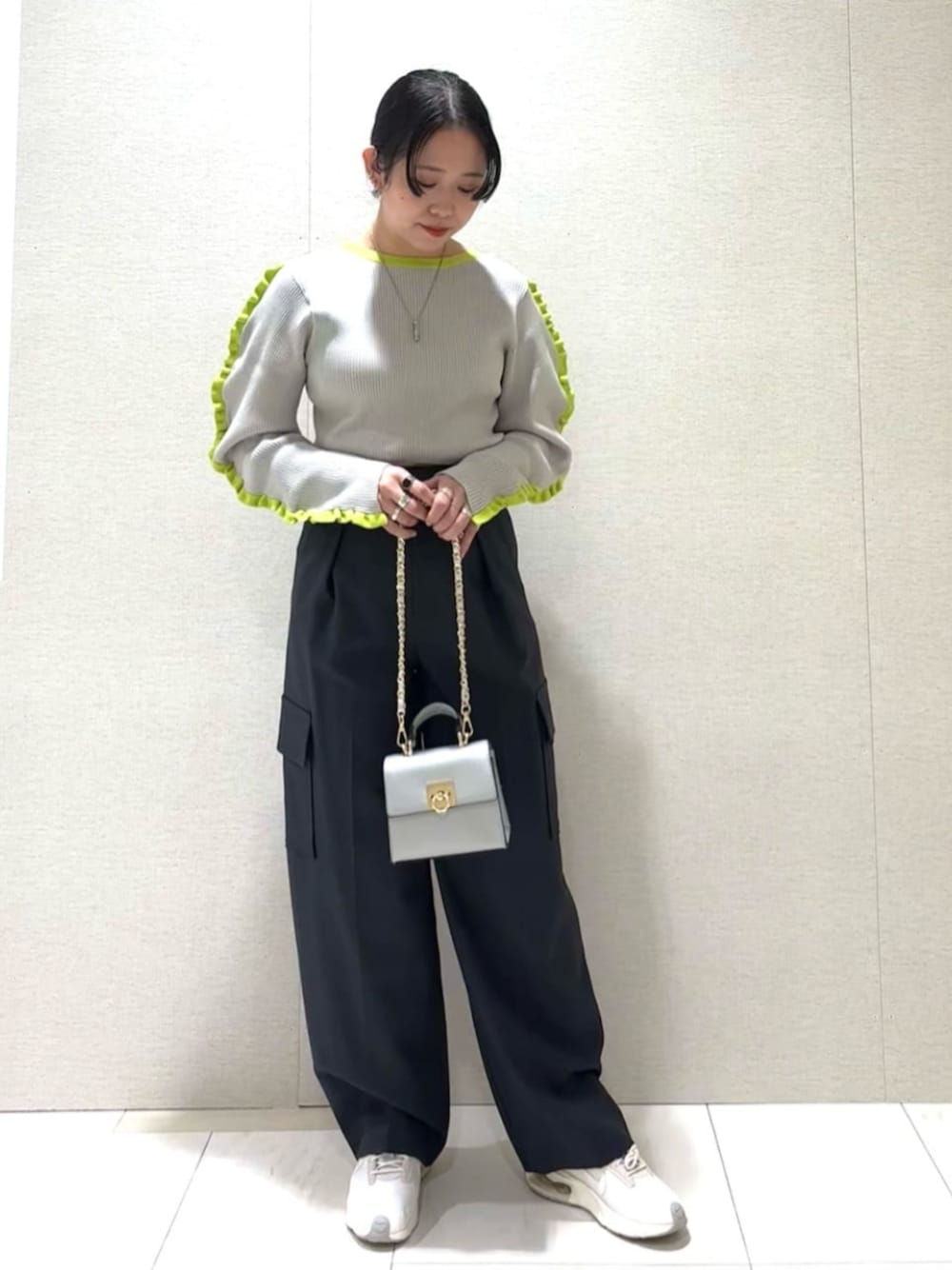 【ニット】 立体フォルムの袖デザインが映えます♫ 【パンツ】 アウトポケットはカジュアルな印象ですが、上品に見える素材感なのでラフ過ぎず様々なテイストにマッチします!