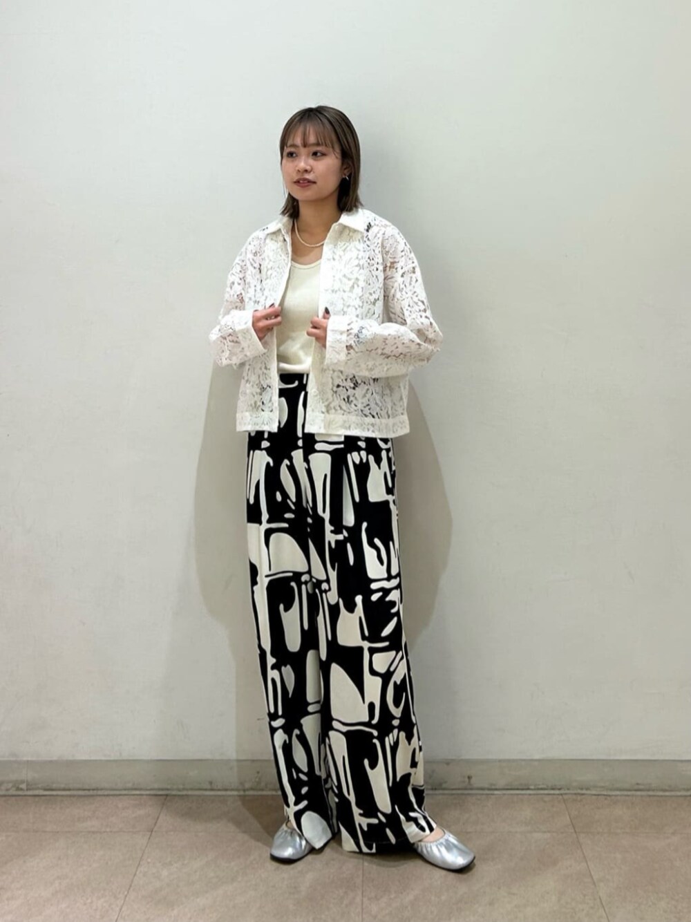 インスタライブにてご紹介したコーディネート♡ アートライクなパンツはゆったりとした履き心地で動きやすさ抜群!ウエストはゴムなので、ラフに着こなせます!レースシャツはレイヤードにもオススメ!まだ肌寒い時期にはインナーとして、初夏には羽織りでお使い頂けます♪