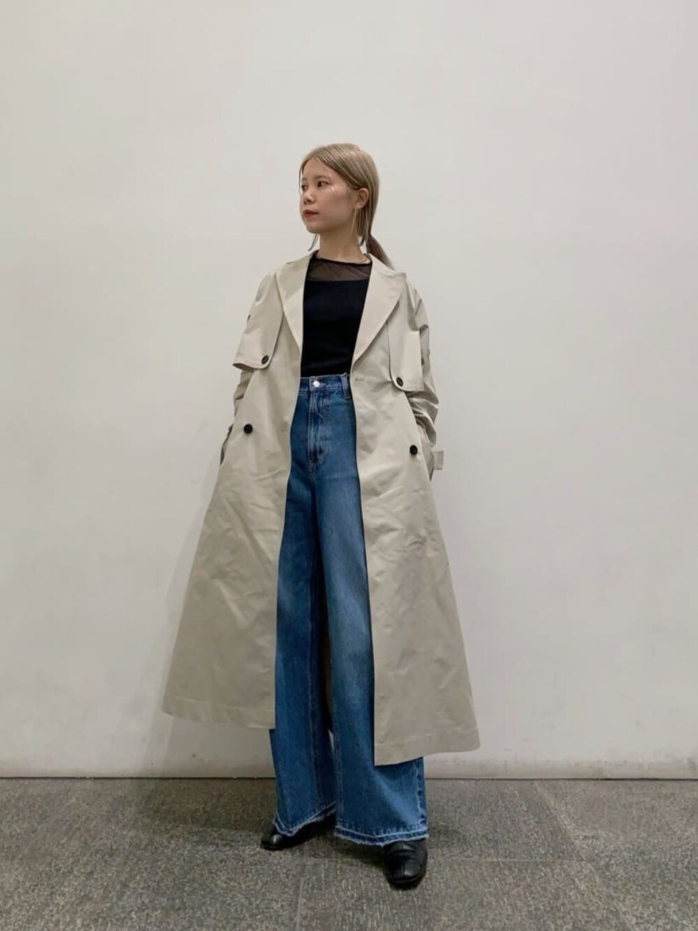 【アウター】春の定番!トレンチコートです。こちらのトレンチは、なんとジレとしてもご着用頂けるデザインです。(写真2枚目)1着で2度楽しめる魅力的なアウターです。 【スタイリングポイント】今年も引き続きシアー系のアイテムがトレンドです。1枚でご着用頂くのも良し、(写真3枚目)トップスやワンピースなどにレイヤードして頂くのも、おしゃれ感が出るのでおすすめです。