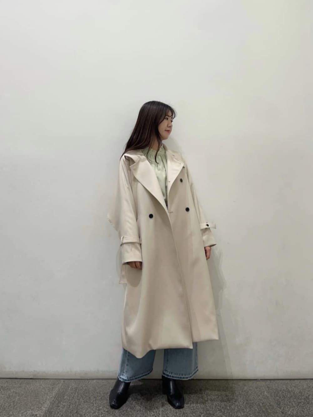春先取りコーデです!トレンチは軽くて着やすいです◎ブラウスは前後2wayなのでイメージを変えて着て頂けます!(トレンチSサイズ着用/デニムMサイズ着用) *****164cm/イエベ秋/骨格ナチュラル*****