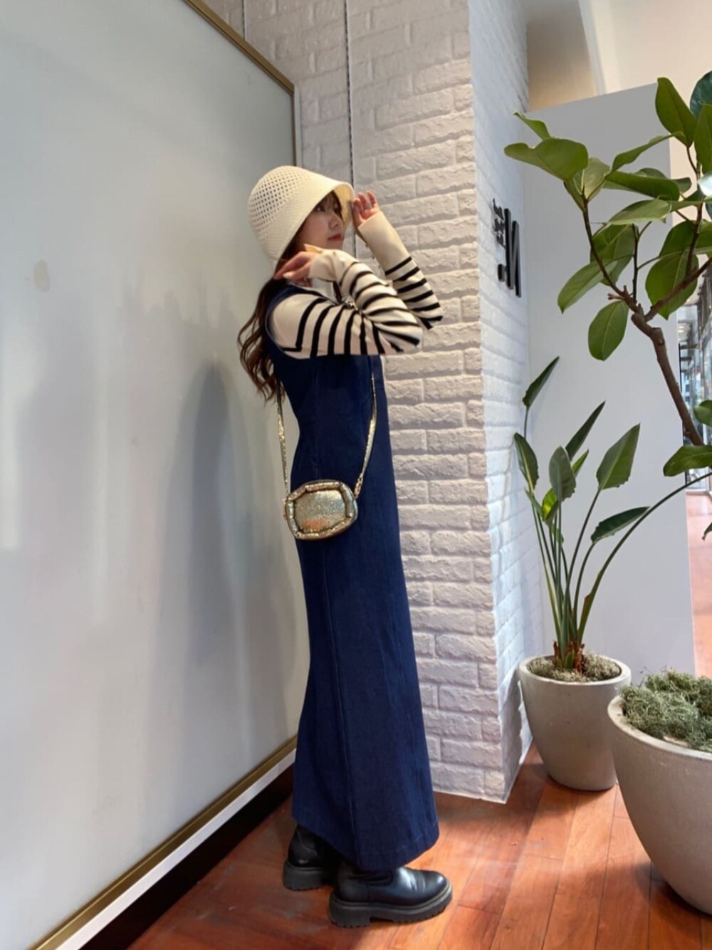 【ワンピース】 ビスチェの切り替えが高めになっているので脚長効果があります!ラインはすっきりとしており上品な仕上がり。深めなスリットも入っているので足捌きも楽です! 【ニット】 袖の部分にボタンとスリットが入っているので一枚でデザイン性があります!インナーにもぴったりなニットです♡