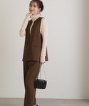 ベストとパンツのセットアップです。TR素材なので、インナー次第で通年使えるのが嬉しいポイント◎入卒園式などセレモニーの予定にはもちろん、単品使いして普段のコーディネートにも取り入れやすいです。ワンサイズですが、157cmで丈余らず履けてます◎ウエストはゴム仕様で、ベストはお腹周りをカバーしてくれるので、お食事の予定にもピッタリです。インナーに着用した総針ニットは、N.定番の、洗えて毛玉ができないニット素材。スリットが入ったカフスがポイントで1枚あるとすごく頼りになります☺︎着心地も柔らかくて最高です!