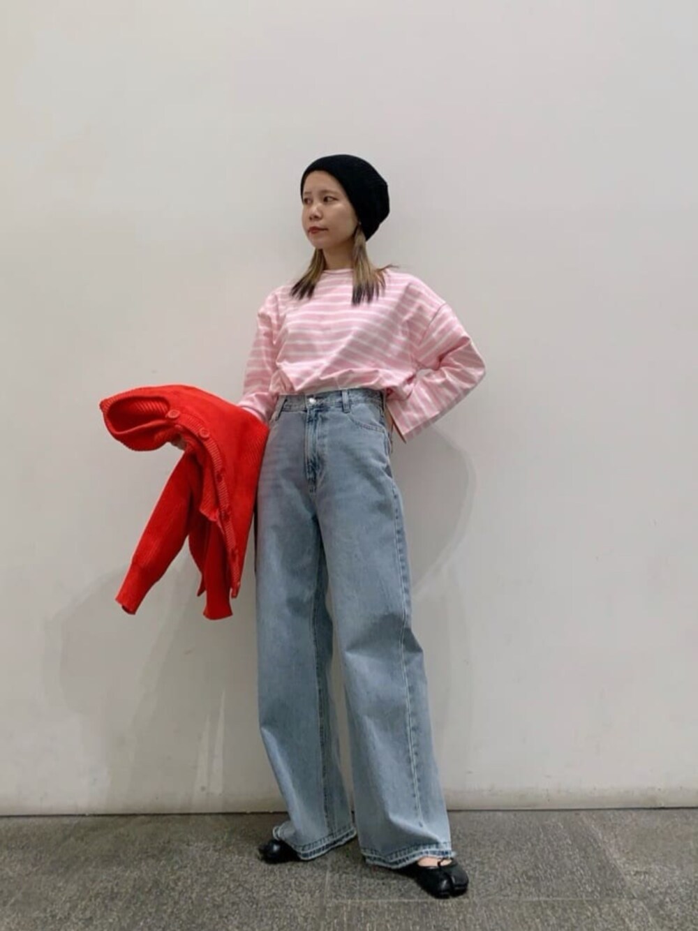 【スタイリングポイント】ピンク×レッドのカラー×カラーでスタイリングしてみました。特にピンクは今年トレンドで注目されていますよね。ピンクのボーダーは中々珍しいので周りと差がつくアイテムだと思います。是非かわいくスタイリングしてみて下さい。