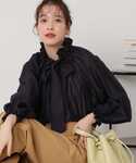 品のあるフリルとリボンタイが華やか見え間違いなしのブラウス。 大人気のベルト付きパンツと合わせ、全体的にブルーなトーンのコーデにしてみました♡ 暗くなりすぎないよう、小物や靴下は春らしい明るめホワイトを選ぶのがポイントです◎ blouse:光沢があり、肌触りもよく柔らかな生地です。首元のフリルは詰まりすぎず、開き具合も調節していただけます◎ pants:春から夏にかけて履きやすい薄手の生地です。ハイウエスト+センタープレスで脚長効果抜群ですよ♫(161cm→Sサイズ着用) staff: 20代前半/161cm/イエベ春/骨格ナチュラル