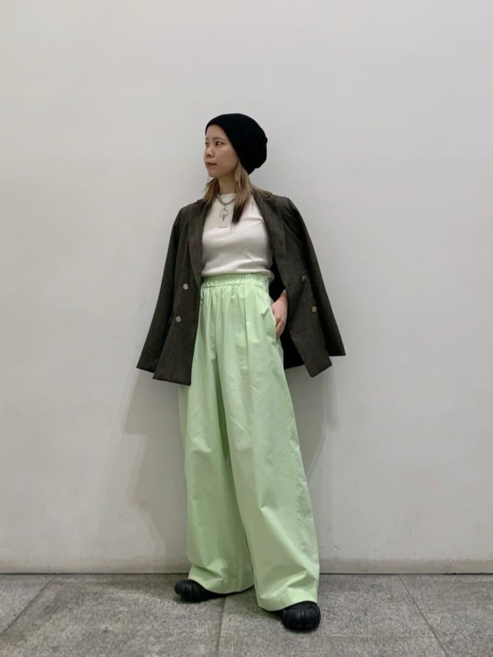 【スタイリングポイント】モード、ストリート、きれいめをmixしてみました。春と言えばジャケット、N.で大人気のジャケットが入荷しました。裏地なしなので、夏前まで着用できます。パンツはベルト幅が広めなので、着痩せして見えます。そして私の推しのTOPSですが、こちらも驚く程着痩せして見えるので私も実際に購入してしまいました! N.の店頭に入荷している商品です。↓ 166-4160206 (テレコボートネックカットソー)宜しければチェックしてみて下さい。