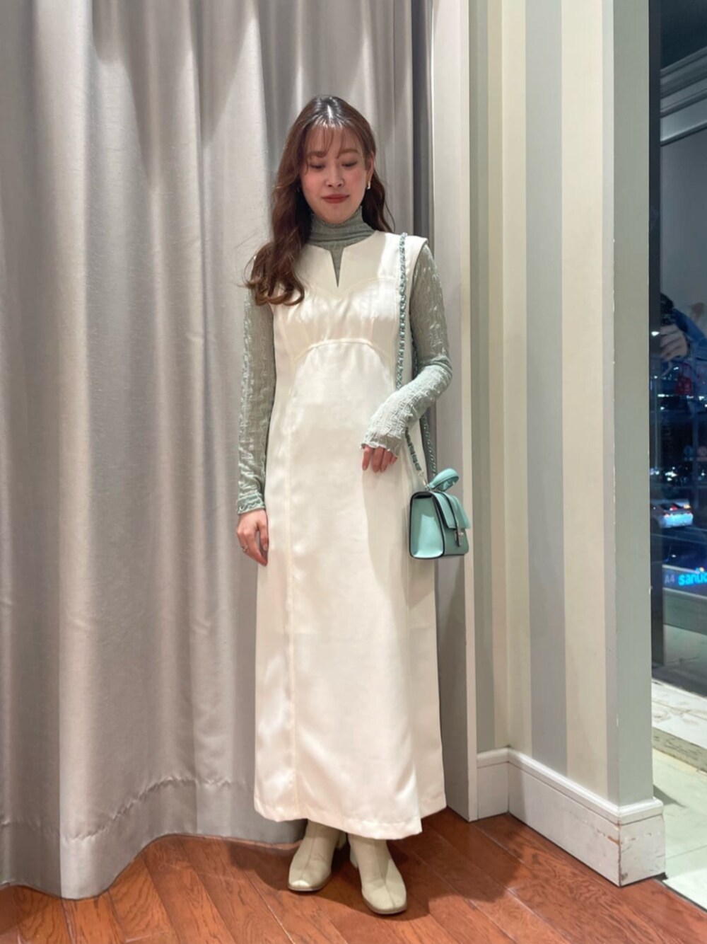 1枚でスタイルアップと可愛いが叶うジャンパースカート♡ Iラインシルエットで程よいフィット感なので体のラインを気にせず着用でき締め付け感なくお召し頂けます◎着丈は157cmの私で足首に少しかかるかなぐらいの長さです。インナー次第でオールシーズン使えるので1枚あれば安心ですね。 ****年齢:20代前半/身長:157cm/パーソナルカラー:ブルベ夏/骨格:ウェーブ/普段サイズ:S〜M****