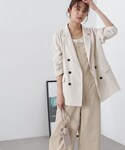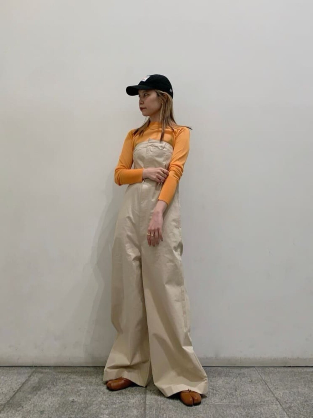 【スタイリングポイント】トレンドのベアロンパースは、156cm、バレエシューズで長めの着丈なので、同じくらいの身長の方はヒール合わせがおすすめです。付属の肩紐を取り付けて頂くと安心です。チノのような軽い素材感で、ベージュですと特に抜け感が出て、春らしくとてもかわいいです。