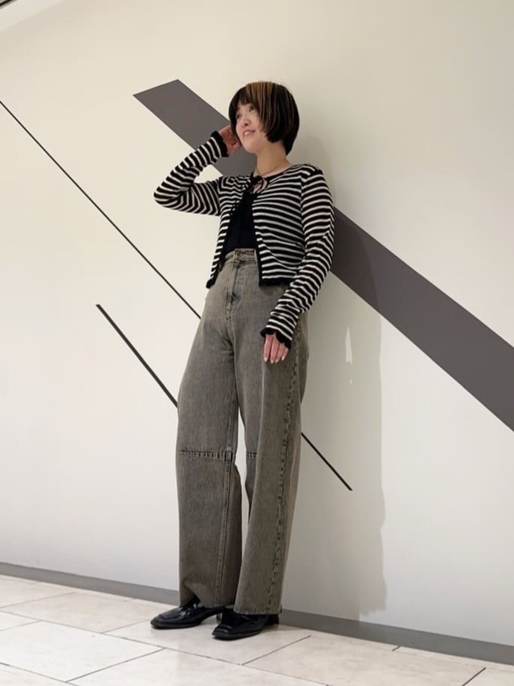 驚くほど足が長く見えるカーブデニムが登場しました!股上は31cm程あり、下腹部をすっぽり覆ってくれるのでインスタイルがおすすめ◎肉感を拾わないカーブシルエットなので、しっかりスタイルアップします! 前年も人気でリバイバルのカーディガンは、春夏のさらりとしたニット素材にアップデートしてます◎上半身がすっきり見えるコンパクトなシルエットです。