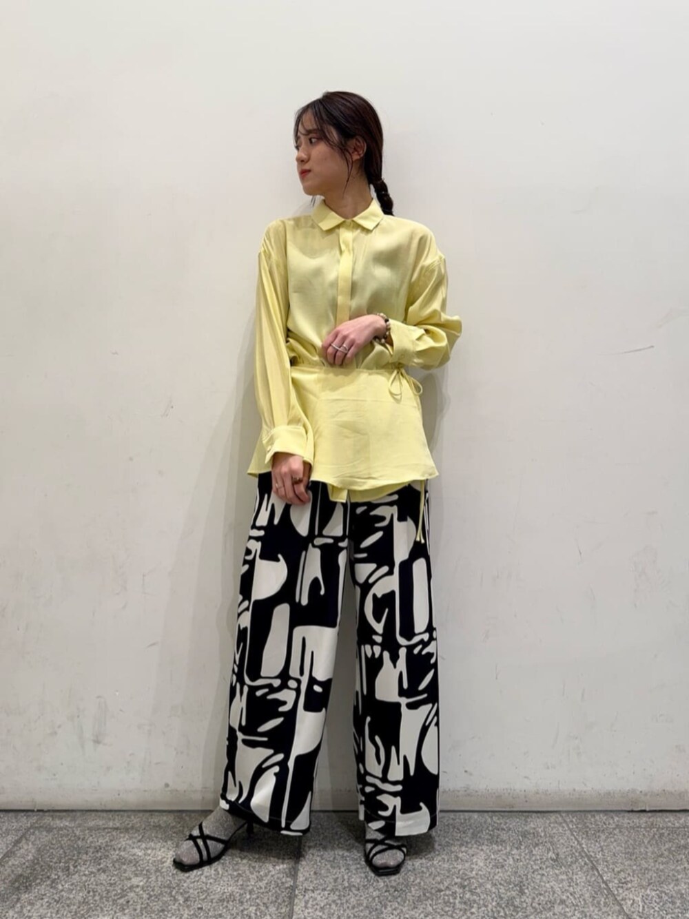 淡く優しいイエローのブラウスにジオメトリック柄のリラックスパンツを合わせ、目を引くオシャレ見え間違いなしのコーデにしてみました♡ tops:取り外しのできるペプラムがウエストの細見え効果を出してくれます◎柔らかくとろみ感のある生地で、ペプラムを取って1枚でキレイめにも着ていただけますよ♫ bottoms:ウエストゴムとワイドなシルエットがゆったりした履き心地で、柔らかい薄手の生地感なので春夏の時期にサラッとお召しいただけます♡ staff: 20代前半/161cm/イエベ春/骨格ナチュラル