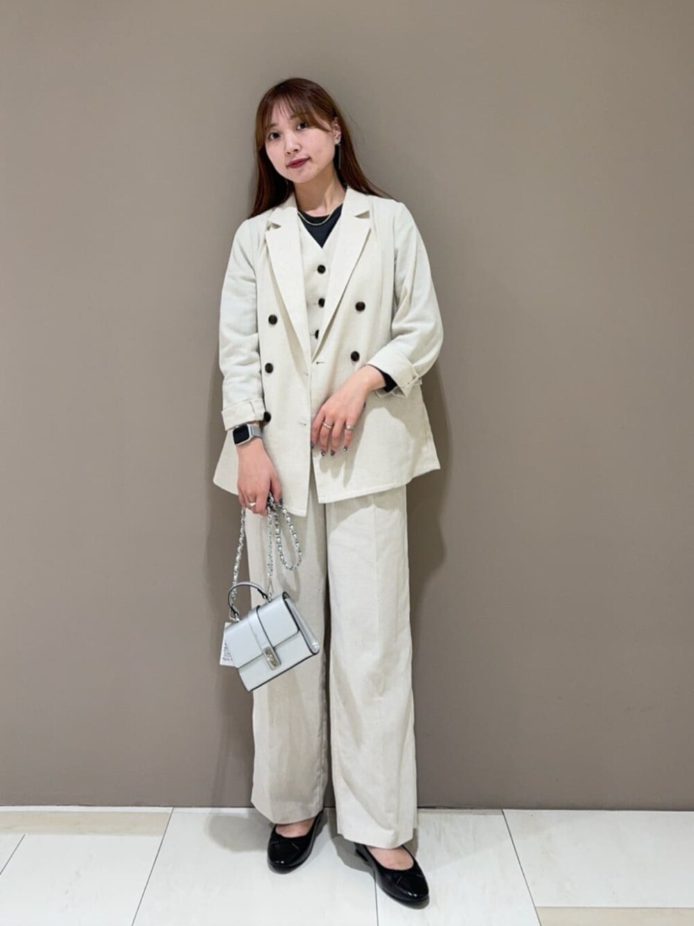 毎年人気の麻混シリーズが今年も入荷しました♡ジャケット×パンツのセットアップの中にベストを着て少しハンサムな印象に着てみました!ベストは夏には1枚でも着れて季節問わず長くお使いいただけます☺︎ジャケットもゆったりとしていて着やすくON/OFF兼用できるデザインなので1枚持っているととても便利です☺︎パンツはMサイズ着用でこの丈感です!結構長めの丈感でかっこよくサマになるのでトップスをインするスタイルもお楽しみいただけます!