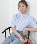 【着心地・サイズ感】ブラウス:立ち上がりのあるフリルとリボンが顔周り華やかに見せてくれます。 パンツ:程よいゆとりがありシルエットが綺麗です。チノのような生地感なので動きやすく履き心地も抜群です! 【スタイリングポイント】甘めなリボンブラウスをカジュアルなパンツ合わせで大人でも着やすいマニッシュなコーデにしてみました♪♪