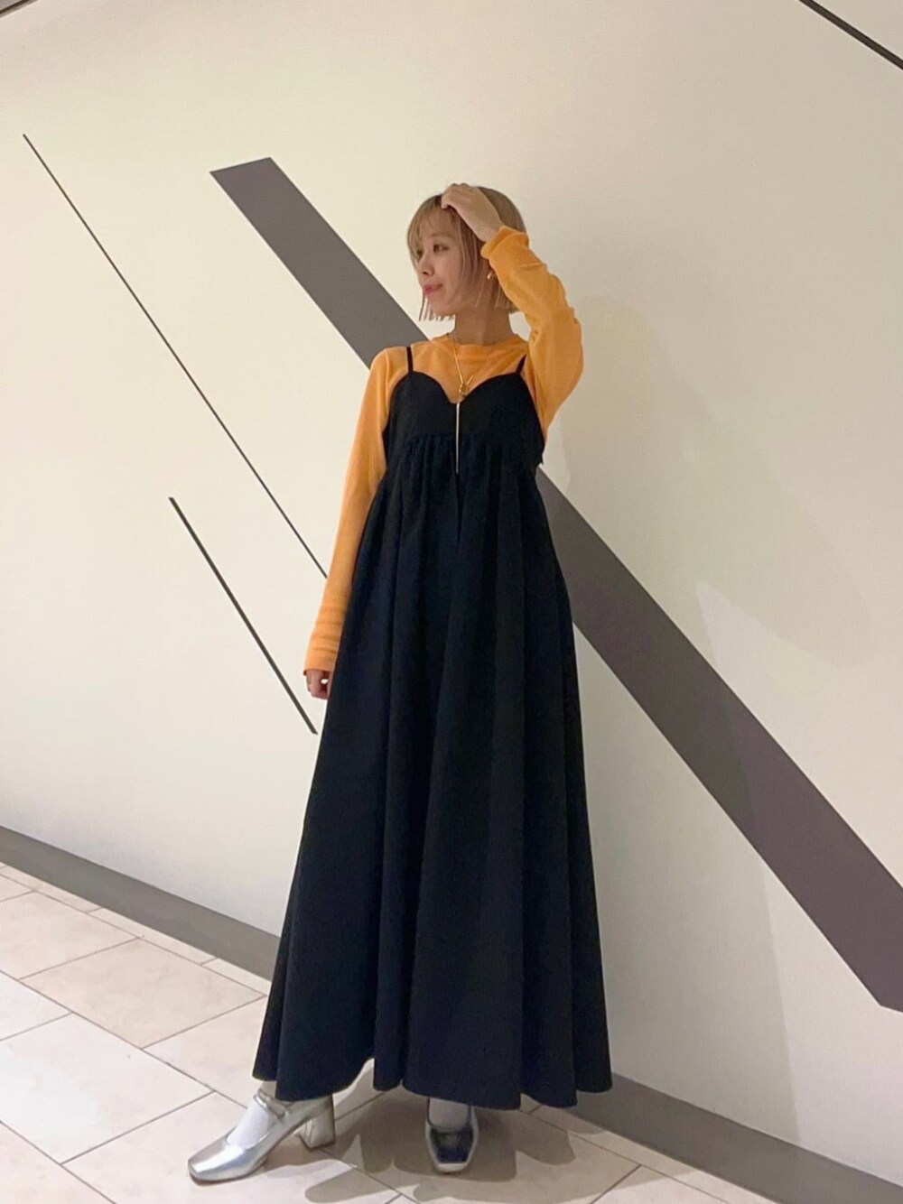 大人気のキャミワンピースが今年も再登場♡ 高めの切り替えとボリューム感のあるスカートとのバランスが絶妙で他にない1着です!! ワンサイズですが、なんと後ろのリボンでお好きな長さに調整できるので、身長問わずに着用できます♪155㎝でヒールなしでも着用できます。シアーカットソーは上品な透け感なのでとっても着やすいです! ほんのり入っているラメ感がオシャレ見えしてくれます♡ ・・155㎝/骨格ウェーブ/イエベ秋・・
