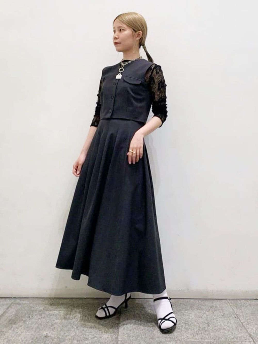 【スタイリングポイント】※身長156cm なんと上下セットで¥17820(税込)と嬉しいセットアップです。セットアップで着ると、おしゃれ感が出ます。もちろん単体でも着回し力抜群!インナーはTシャツでカジュアル見せはもちろんのこと、トレンドのシアーやレースインナーを合わせると、女性らしさがUPします。