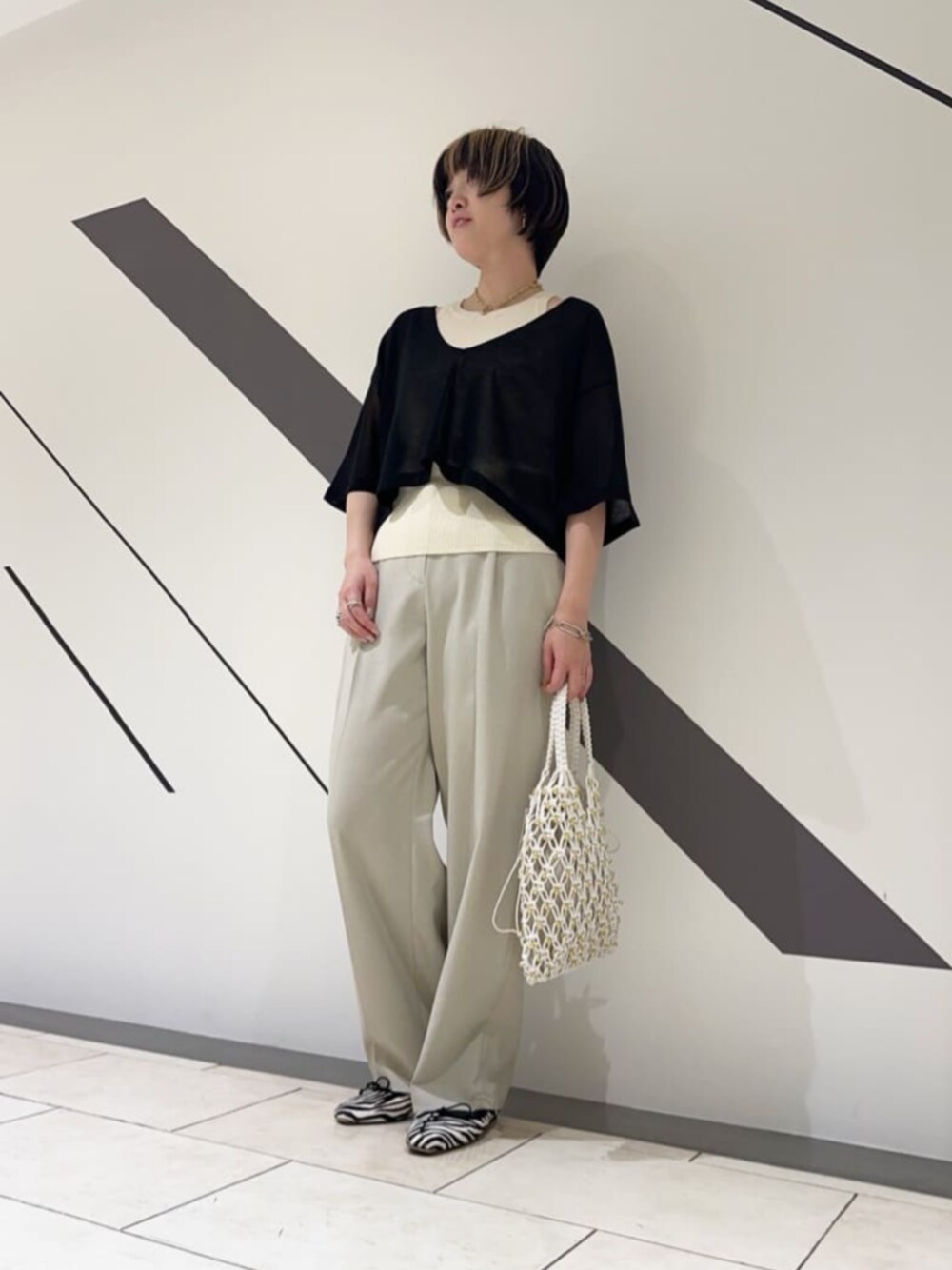 アメスリのインナー×ニットのセットアイテムが登場しました◎ニットは短丈で、袖は肘まで隠れますが、かなり薄手なシアーニットなので、真夏まで涼しく着られそうです。アメスリのインナーは長さがしっかりあるので、合わせるボトムスによってはインでもアウトでも使えます。インナーはもちろん単品でも使えますし、ニットだけ単品でキャミワンピースの上から被ったりもできます! パンツはさらさらとした気持ちの良い肌触りで、キレイめにも休日スタイルにもどちらにも使えます♩