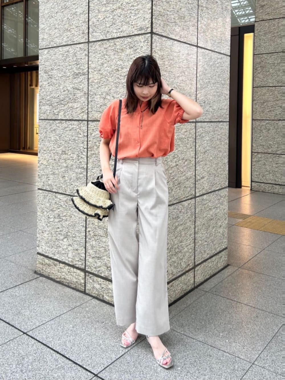 ・・ドライポプリンランタンスリーブブラウス・・ 【サイズ感】身長168cmの私で、お尻が半分隠れる丈感でした.!! 【着心地】サラッとしたドライタッチな肌触りで、とっても軽い着心地でした◎空気を含むようなシルエットで通気性もいいので、暑い夏にもぴったりです♡ 薄手な生地ですが透け感はないので安心感がありました!! 【スタイリングポイント】夏らしさ全開な、綺麗めカジュアルコーデを組んでみました! 何よりブラウスをインした時のボリューム感が可愛いです♡♡ オフィスシーンでも着れるブラウスとパンツは、足元にミュールやスポーツサンダルを持ってくるだけで色んな着こなしが楽しめます☺︎