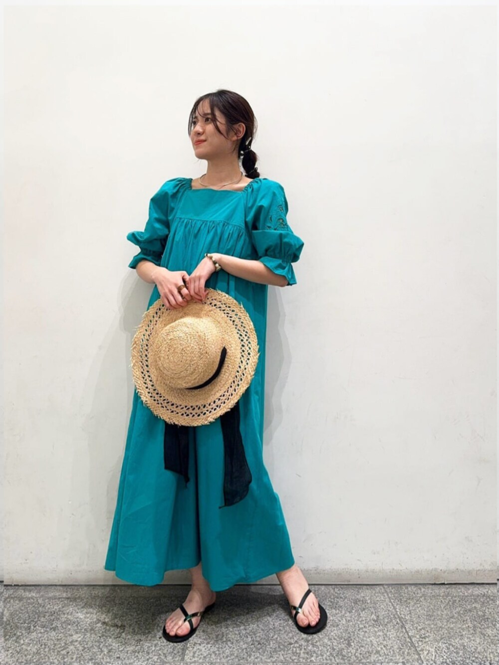袖の刺繍が華やかでカワイイ、暑い夏にピッタリのコットンワンピースです♡ dress:161cm Mサイズ着用 スクエアネックがデコルテをスッキリ見せてくれますが、開きは深くなく、インナーを気にせずお召しいただけます◎ あまり肌見せしたくない方はシアーインナーを重ねても可愛いですよ♫ 袖のボリューム感も広がりすぎず、腕を華奢に見せてくれます◎ staff: 20代前半/161cm/イエベ春/骨格ナチュラル