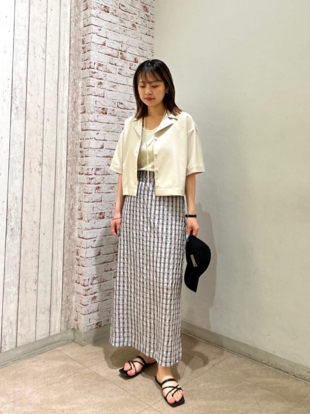 ポコポコとした素材の楽チンスカート♡ タイトラインでも伸びがいいので着心地も抜群!そしてとにかく涼しい!肌に張り付かないので暑いこれからのシーズンにピッタリです!スリットも深めに入っているので足捌きも軽やか♪