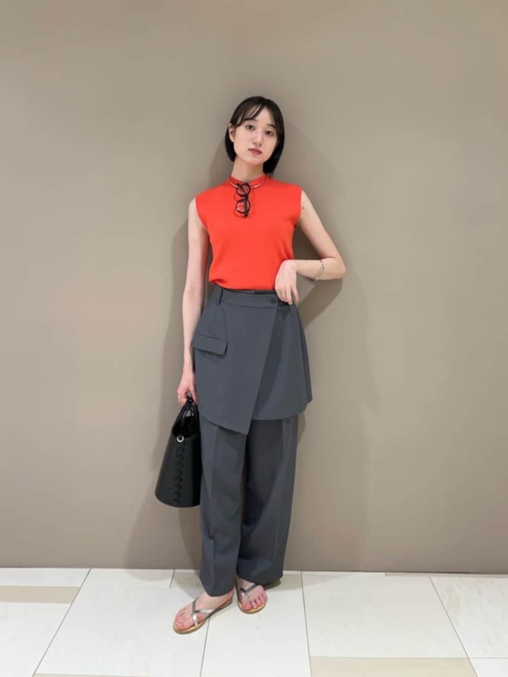 今年トレンドのレイヤードパンツを主役にしました☆アシメントリーのラップデザインがオシャレ上級者感が出ますね!ラップ部分を他のパンツやデニムに合わせて頂くと、いつものコーデにワンポイント出来ます☺︎もちろんラップ部分を取り外してパンツ単品でもお召しいただけます! ------------------------- 身長:167cm 【普段サイズ】・トップス:M・ボトムス:M・シューズ:24.5~25.0 【着用サイズ】・トップス:M・ボトムス:M -------------------------