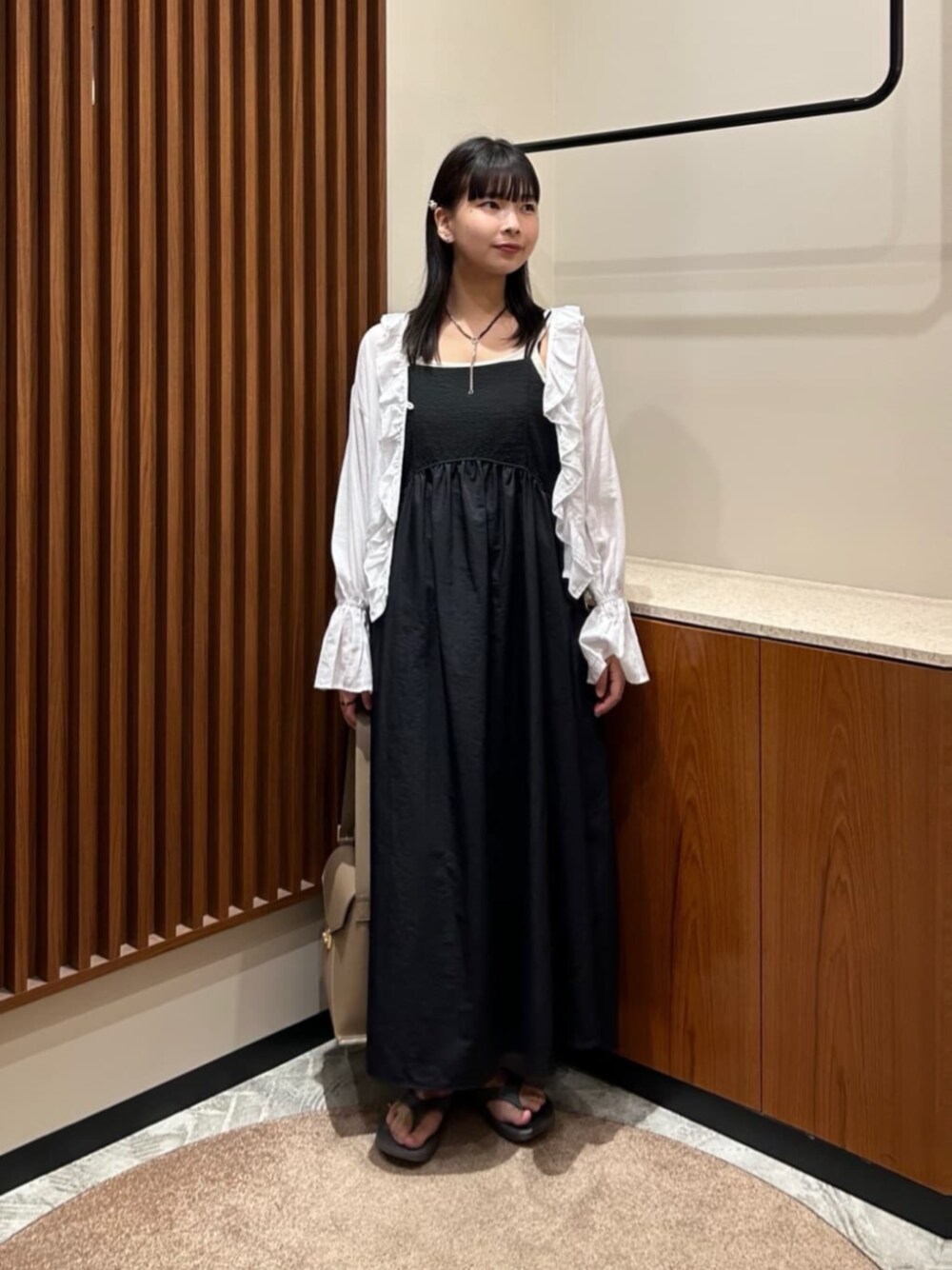 ・・ラッフル付き羽織ブラウス・・ 【サイズ感】身長168cmの私で腰骨が隠れる丈感です!! 【着心地】まるでガーゼのように柔らかく、肌触りがとっても気持ちよかったです!! 少し透け感があり、軽い着心地なので、夏場でもサラッと羽織れる一枚です☺︎ 手首周りがゴムになっているので、袖のボリュームを出したり、長さを調節もできます!! 【スタイリングポイント】 キャミワンピースと合わせて、大人ヘルシーなスタイリングを組んでみました♡少し襟を抜いて羽織るのがおすすめです☺︎ ------------------------- 身長:168cm 【普段サイズ】トップス:M ボトムス:L シューズ:24.0 【着用サイズ】・トップス:M・ワンピース:M -------------------------