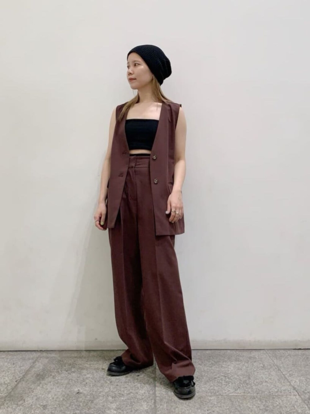 まだまだ暑い日が続きますが、今すぐ着用できて合わせ方次第で秋までご着用頂ける先取りアイテムのご紹介です。小物をブラックで纏めてモードさをプラスしました。パンツはハイウエストでウエスト周りがスッキリ見える優秀パンツです。是非お試し下さいませ。 ------------------------- 身長:156cm 【普段サイズ】トップス:M・ボトムス:M・シューズ:23.0 【着用サイズ】トップス:M・ボトムス:M・シューズ:23.0 -------------------------