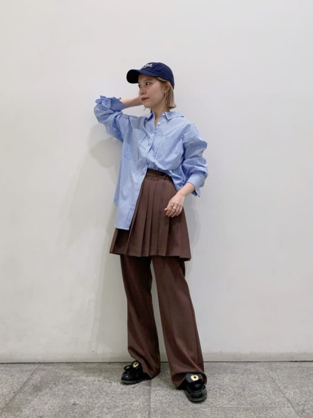 これからの時期万能アイテムのシャツを使ったスタイリングです。オーバーサイズ感がとてもかわいいので一度お試しして頂きたいです。ボトムスはトレンドのスカートをレイヤードしたデザインです。気になるヒップや太もももカバーしてくれる優れ物です。かなりスタイルアップできるので、こちらも一緒にお試し下さいませ。 ------------------------- 身長:156cm 【普段サイズ】トップス:M・ボトムス:M・シューズ:23.0 【着用サイズ】トップス:M・ボトムス:M・シューズ:23.0 -------------------------