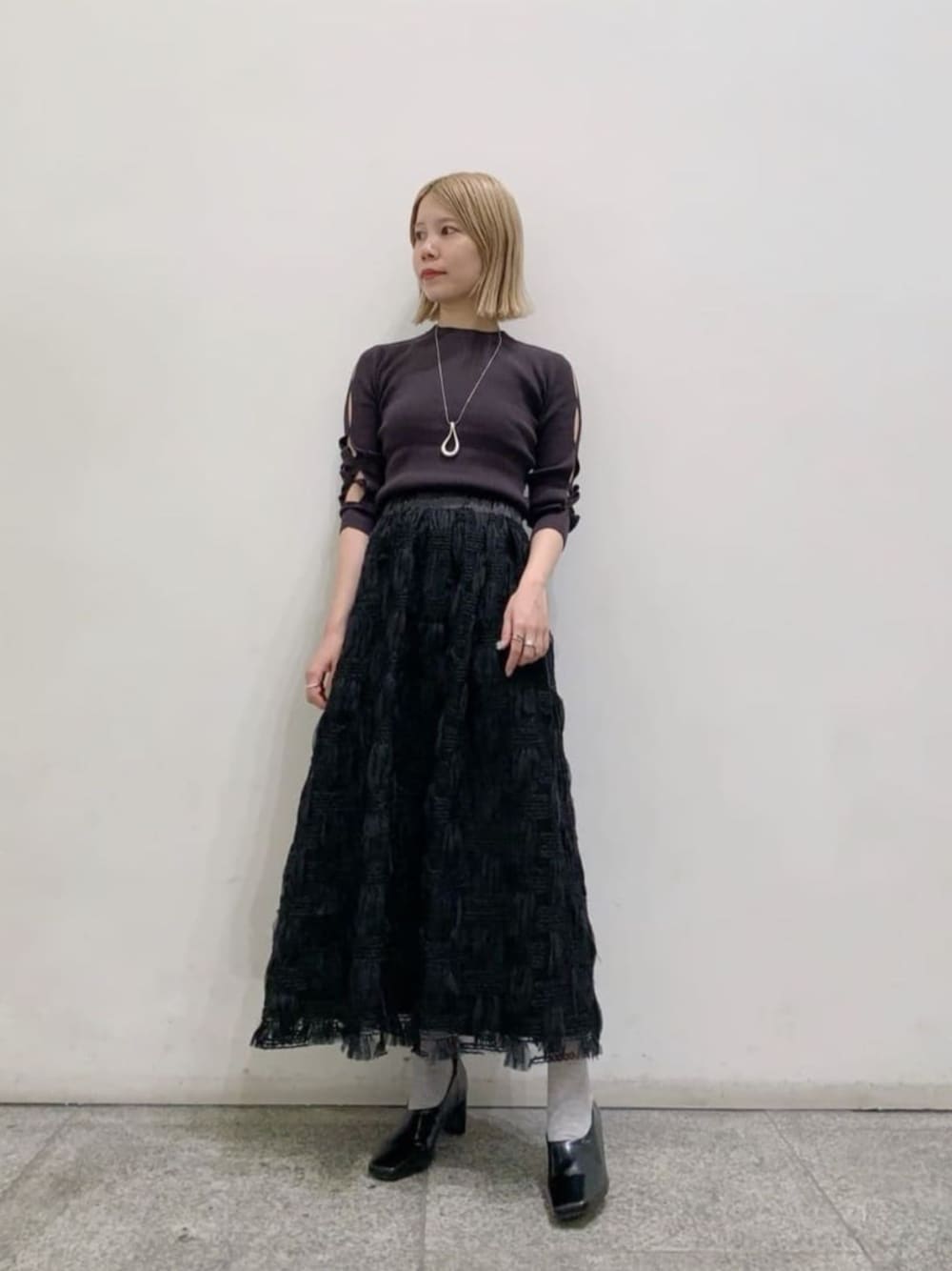 ニットは一度ご試着して頂きたいくらい、着心地抜群です。腕の肌見せデザインが程良く抜け感を出してくれます。今年の注目は、「靴下合わせ」N.にも靴下が入荷しております。是非ブーツやミュールなどと合わせてみて下さいね。 ------------------------- 身長:156cm 【普段サイズ】トップス:M・ボトムス:M・シューズ:23.0 【着用サイズ】トップス:M・ボトムス:M・シューズ:23.0 -------------------------