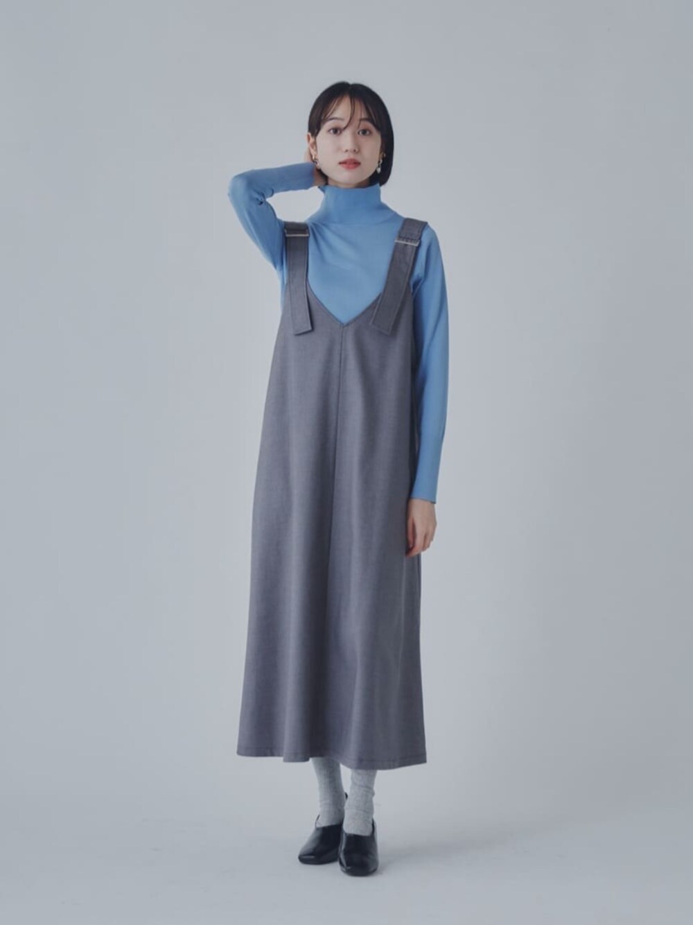 私おすすめのブルー×グレーの組み合わせのリラックスコーデです☺︎ 《ニット》ビスチェ切り替えのデザインがさりげなく、こなれ感が出るニットです♩単品使いももちろん、ジャンスカやアウターのインナー使いで胸元のデザインをちらっと見せるのがオススメです☆ 《ジャンパースカート》肩紐の大ぶりなバックルがコーディネートのアクセントになるジャンパースカートです!スカート部分は立体感があり、動きも出るので上品な印象になります。 ------------------------- 身長:167cm 【普段サイズ】トップス:M・ボトムス:M・シューズ:24.5~25.0 【着用サイズ】トップス:M<br>・ワンピース:M<br>・シューズ:24.5cm -------------------------