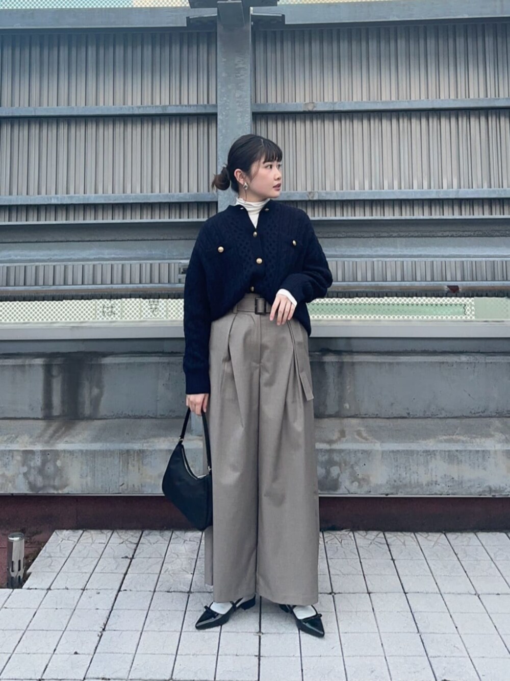 最高級のラムウール素材を使ったN.人気のHAMILTONニット♡HAMILTONウールなので肌触りもすごく滑らかで、温かみがあります。デザインの異なるケーブル編み×ゴールドボタンで高級感のあるN.イチオシニットです!!ワイドパンツと合わせたリラックス感のあるカジュアルコーデにしました♪ ------------------------- 身長:158cm 【普段サイズ】トップス:M ・ボトムス:M ・シューズ:23.5 【着用サイズ】トップス:M ・ボトムス:S ・シューズ:23.5 -------------------------