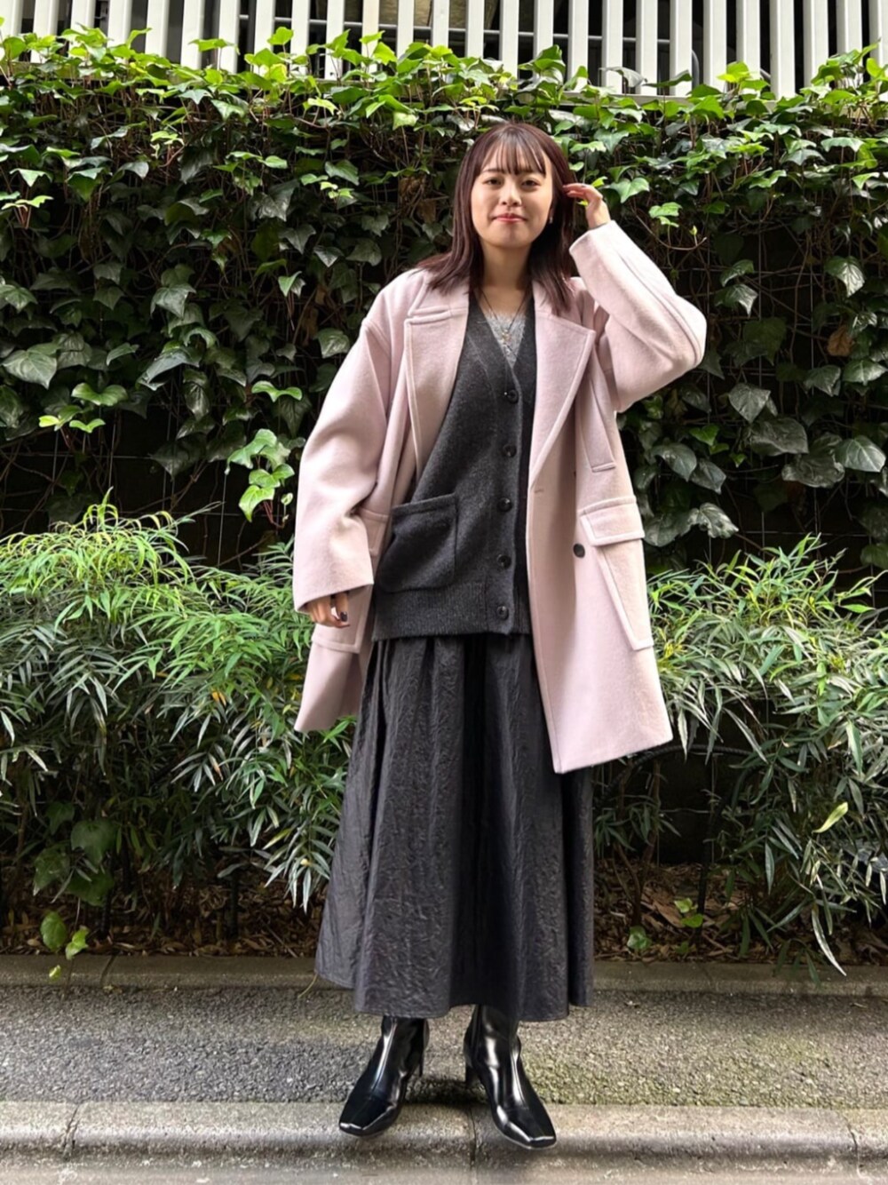 ピンク×グレーでまとめたスタイリングです♡ トレンドのベビーピンクが旬なコーデに仕上げてくれます!インナーはグレーでまとめ、ピンクでも甘さ控えめ!コートはオーバーサイズでも、サイドのポケットが大きめなのでしっかりメリハリがつくシルエットです♪ カーディガンは、N.で毎年人気のハミルトンウール!軽くて暖かく着心地抜群です★ ------------------------- 身長:160cm 【普段サイズ】トップス:M・ボトムス:M・シューズ:23.0 【着用サイズ】トップス:M・ボトムス:M・シューズ:23.0 -------------------------