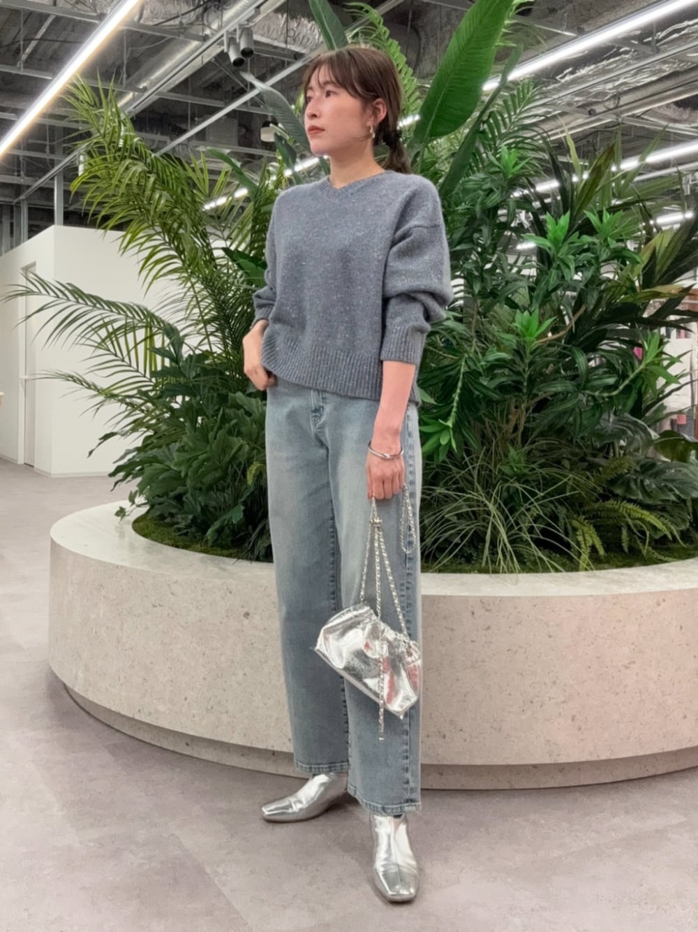 ミックスカラーがかわいいニットに、5ポケットワイドデニムパンツの新色ブルーを合わせた大人カジュアルスタイル。小物はシルバー系でまとめて統一感を。ニットはそのまま1枚でも、シャツやカットソーとのレイヤードもおすすめです♩ ------------------------- 身長:160cm 【普段サイズ】トップス:M・ボトムス:M・シューズ:24.5 【着用サイズ】トップス:M・ボトムス:M・シューズ:24.5 -------------------------