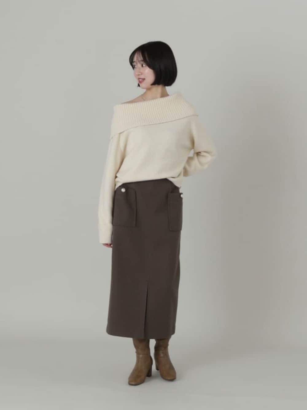 さり気ない肌見せで大人フェミニンに♡ N.では珍しいオフショルニットは大きめな襟ぐりで華やかさも出しつつ、フィットしてくれるので肩から落ちにくいのも嬉しいポイント☺︎肌見せに抵抗がある方は、シャツをレイヤードするのも今年らしくてオススメです。 ------------------------- 身長:167cm 【普段サイズ】トップス:M・ボトムス:M・シューズ:24.5~25.0 【着用サイズ】トップス:M・ボトムス:M -------------------------
