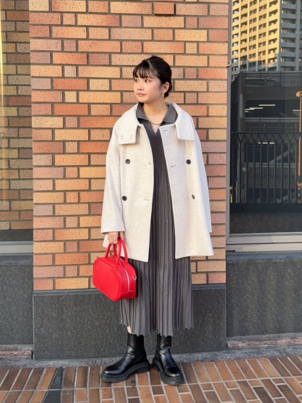 昨年も大人気だったスタンドカラーミディコートが今年も登場しました♡首周りをすっぽりと包んでくれるので防寒対策にもピッタリ♪骨格ストレートですがスタンドカラーにしても首周りにはゆとりが出るので窮屈感無く着れました。ワンピースはピタッとしすぎないので肉感を拾わずお召し頂けます。158cmで脛辺りの丈です。 ------------------------- 身長:158cm 【普段サイズ】トップス:M・ボトムス:M ・シューズ:23.5 【着用サイズ】ワンピース: M ・コート: M -------------------------