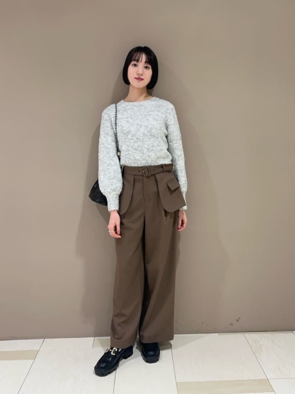 ニットはミックス生地でアウターからチラッと見えるのが可愛いです!ショート丈でスッキリ、ボトムスと合わせやすいのもポイント☆ アウターはカナダダウンを使用していてとにかく暖かいです!!着られてる感が出ることが多いダウンですが、ボリュームが控えめで着丈も長くないので大人な印象になりますよ☺︎ ------------------------- 身長:167cm 【普段サイズ】トップス:M・ボトムス:M・シューズ:24.5~25.0 【着用サイズ】トップス:M・ボトムス:M・アウター:M -------------------------