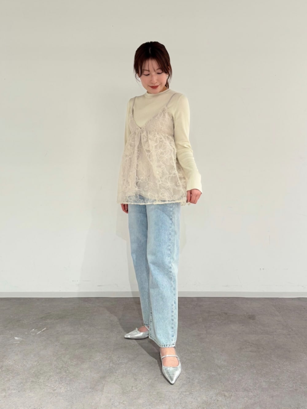 キラッとしたスパンコールが大人かわいい フラワーレースキャミビスチェは、official site限定商品となっております。 ニットを合わせて、今からでも楽しめる春コーデに♩ デニムパンツを合わせて、スッキリとしたカジュアルな着こなしがおすすめです。 ------------------------- 身長:160cm 【普段サイズ】・トップス:M・ボトムス:M・シューズ:24.5 【着用サイズ】・トップス:M・ボトムス:M・シューズ:L -------------------------
