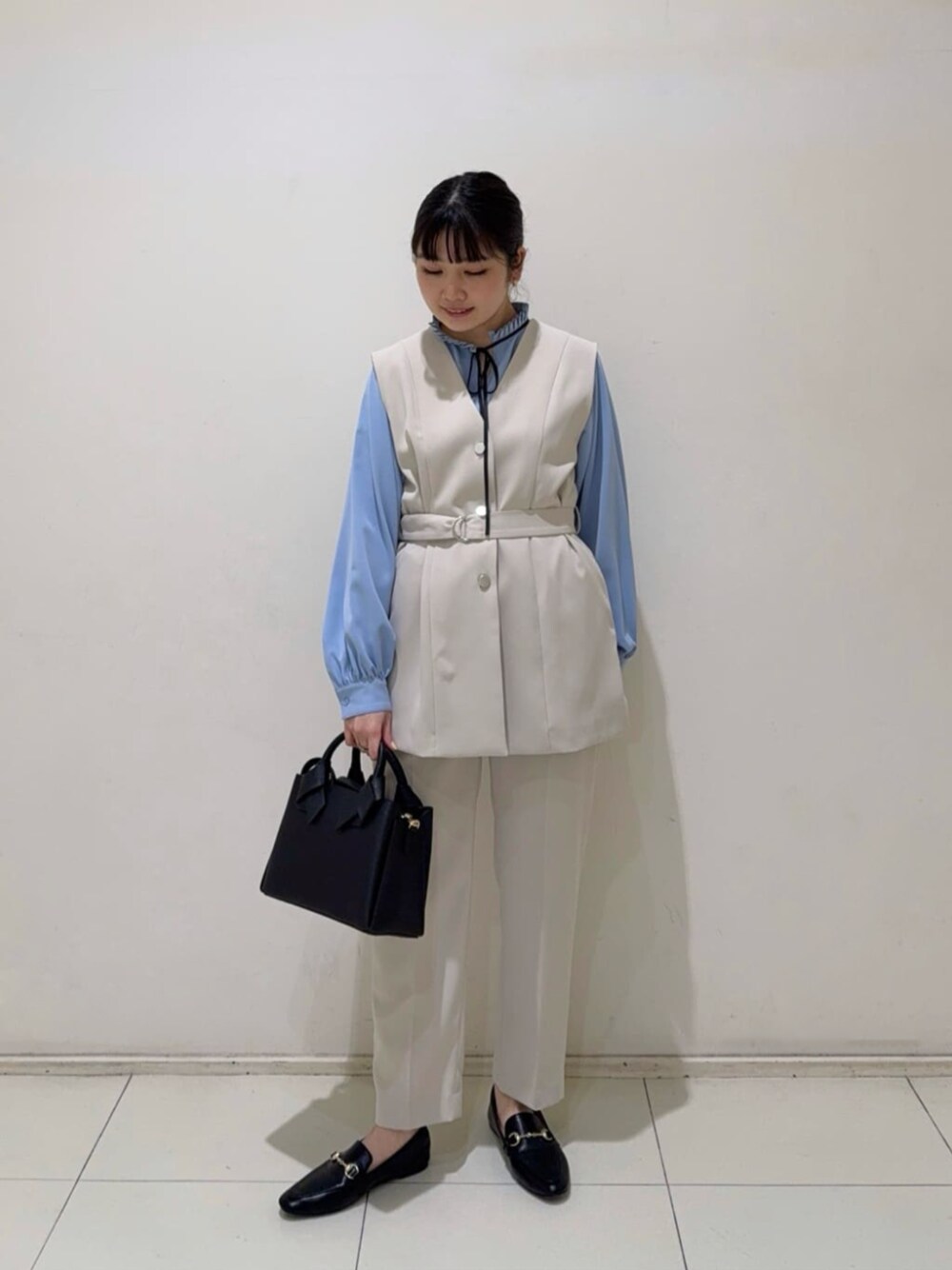セレモニーシーズンにピッタリなセットアップアイテム♪ジレとパンツは別々の販売ですがセットアップ着用可能です。ジレはワンサイズですがウエストでベルトマークできるので小柄な方でもスッキリとお召し頂けます。パンツはアンクル丈のテーパードパンツなのでフォーマルシーン、通勤にもピッタリです。どちらもポリエステル100%でシワになりくくお手入れも簡単なアイテムです! ------------------------- 身長:158cm 【普段サイズ】 ・トップス:M ・ボトムス:M ・シューズ:23.5 / M 【着用サイズ】 ・トップス:M ・ボトムス:M ・シューズ:M -------------------------