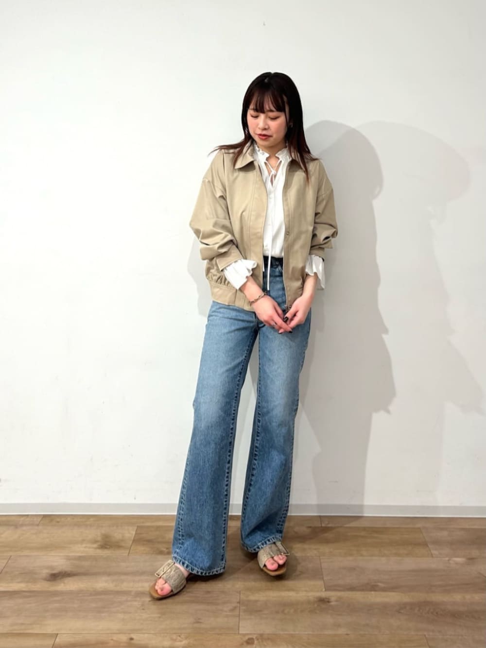 春の王道カラーを掛け合わせたスタイリング☺︎ 甘めブラウスをアウターとデニムでカジュアルに落とし込むのが今季の気分♪ ブラウスは手首のフリルまでこだわっており、レイヤードを楽しめるのもオススメポイントのひとつです。 ------------------------- 身長:160cm 【普段サイズ】 トップス:M ボトムス:M シューズ:23.0 【着用サイズ】 トップス:M ボトムス:M シューズ:23.0 -------------------------
