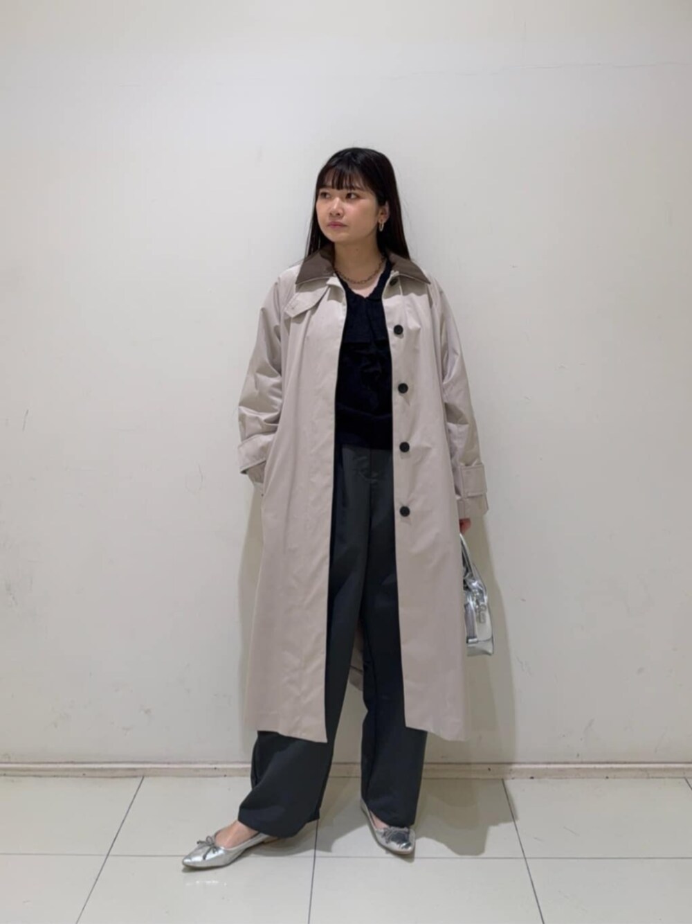 コートはレザー部分が取り外し可能で、外すとステンカラーとして2wayでお召し頂けます。つるっとしたややハリ感のある素材です。オーバーサイズで全体的にゆるっとしているので普段はMサイズですが今回はSサイズにしました。中のブラウスはレースのデザインでやや透け感があります。丈も程よいショート丈でスッキリとしたバランスが取れるのでアウトスタイルで着用しました。 ------------------------- 身長:158cm 【普段サイズ】 ・トップス:M ・ボトムス:M ・アウター:M 【着用サイズ】 ・トップス:M ・ボトムス:M ・アウター:S