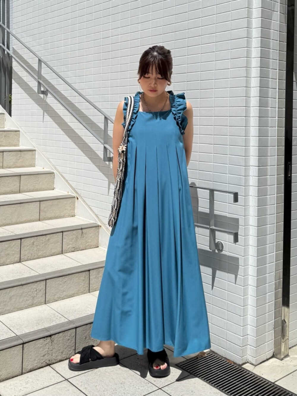 夏のお出かけにピッタリなワンピース♡肩や首元のフリルデザインがワンポイントになります。タックがしっかりと入っているので動く度に広がるボリューム感や揺れ感がとても可愛いです。身長158cmで足首くらいのロング丈です。スポサンやスニーカーで甘辛な組み合わせがオススメ! ------------------------- 身長:158cm 【普段サイズ】 ・ワンピース:M ・シューズ:23.5 / M 【着用サイズ】 ・ワンピース:M ・シューズ:23.0/ M -------------------------