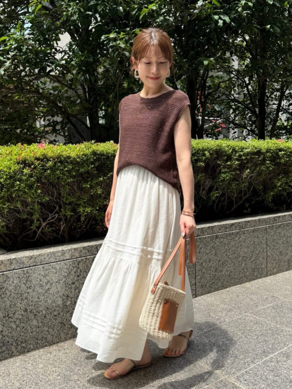 フレンチスリーブニットに、ティアードスカートを合わせて大人かわいいスタイルにしました♡ ニットはさりげなくキラッとするスパンコールなので、大人も着やすいですよ◎ スカートは楊柳素材なので、シワも気にならずさらっと着ていただけます! ------------------------- 身長:160cm 【普段サイズ】 ・トップス:M ・ボトムス:M ・シューズ:24.5./ L 【着用サイズ】 ・トップス:M ・ボトムス:M -------------------------