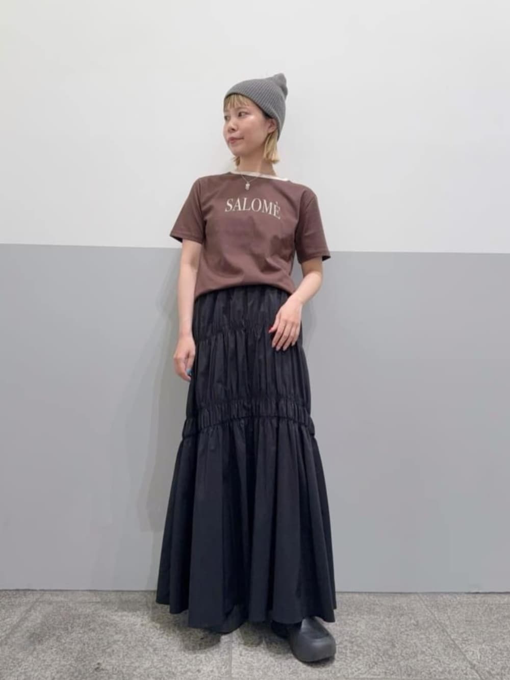 ニュアンス感のある配色が大人な雰囲気のTシャツをメインにスタイリングしました。スカートはギャザーを贅沢に使った存在感のある一着です。是非合わせて着てみてくださいね。 ------------------------- 身長:156cm 【普段サイズ】 ・トップス:M ・ボトムス:M ・シューズ:23.0 【着用サイズ】 ・トップス:M ・ボトムス:M ・シューズ:23.0 -------------------------