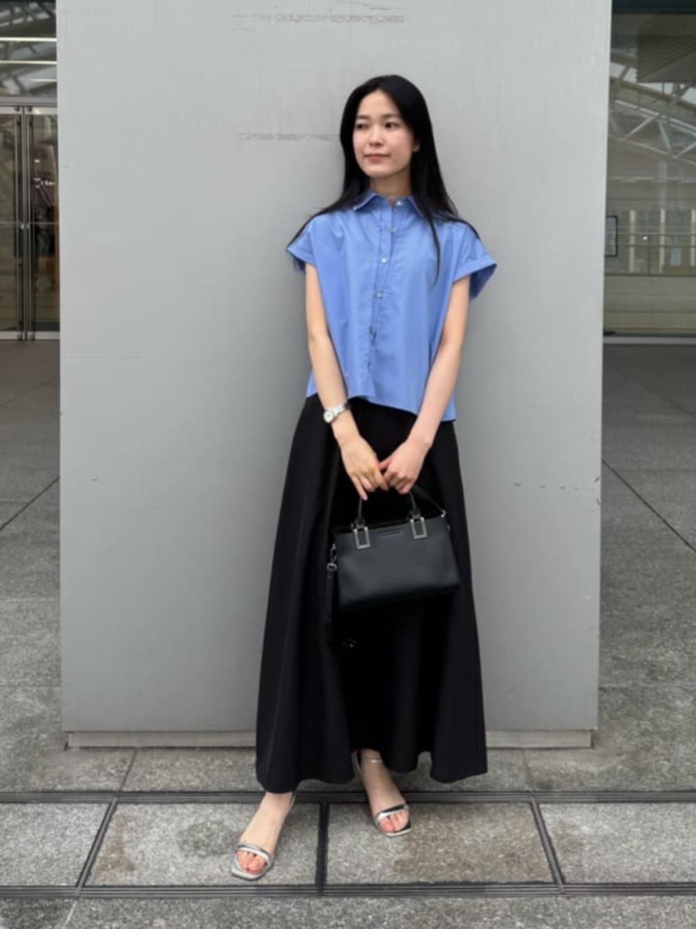後ろ姿まで可愛いバックプリーツシャツ♡ お袖はフレンチスリーブなので腕も綺麗にみえます! Aラインスカートと合わせキレイめなコーディネートにしてみました♩ スカートもリネンライク素材で軽くサラッとしており、とても動きやすくて涼しいです! ------------------------- 身長:159cm 【普段サイズ】 ・トップス:M ・ボトムス:M ・シューズ:23.0/M 【着用サイズ】 ・トップス:M ・スカート:M -------------------------