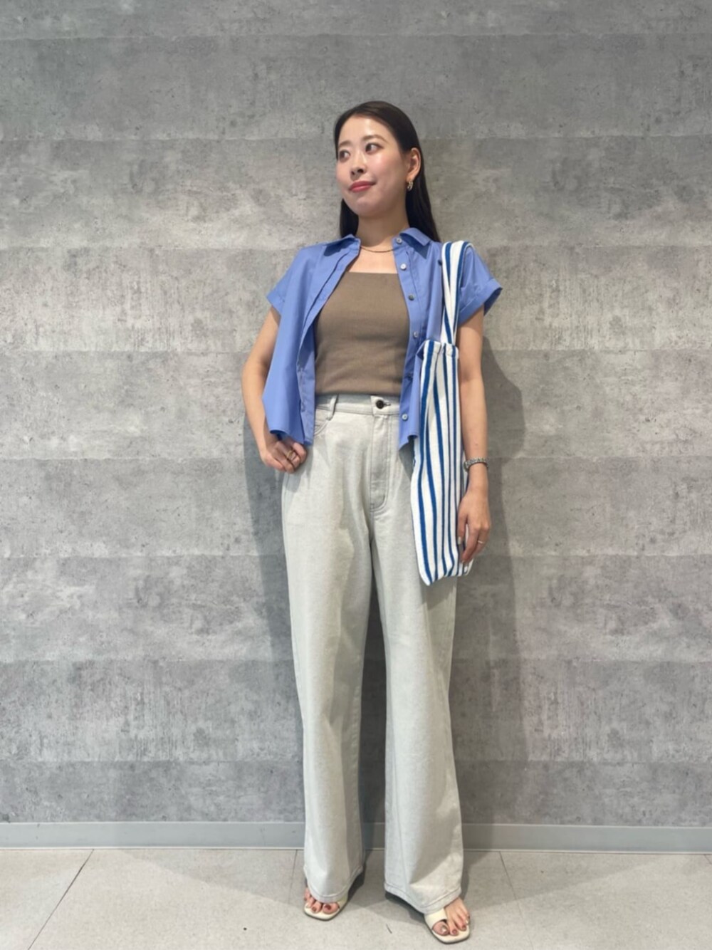 前回好評だったバックプリーツブラウスから半袖が登場! ショート丈でアウトで着てもスタイルアップが叶います◎骨格ウェーブさんはウエストが見えるように羽織として着るのもオススメです。 デニムはグレージュのような色味でブルーデニムに飽きてきた方にはもってこいの1枚です♩ ------------------------- 身長:156cm 【普段サイズ】 ・トップス:S/M ・ボトムス:S 【着用サイズ】 ・トップス:M ・ボトムス:M -------------------------